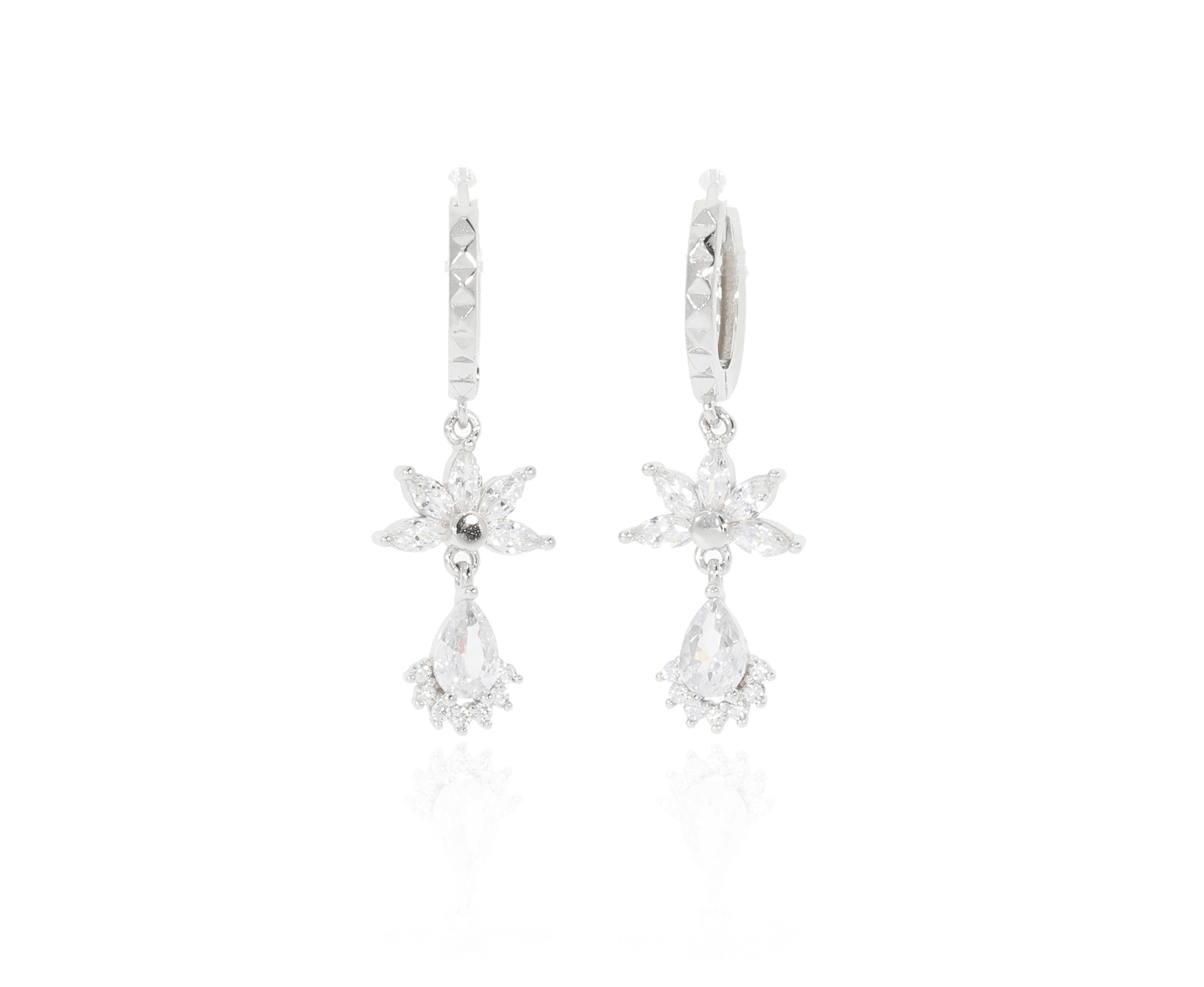זוג עגילי פרח וטיפה כסף 925