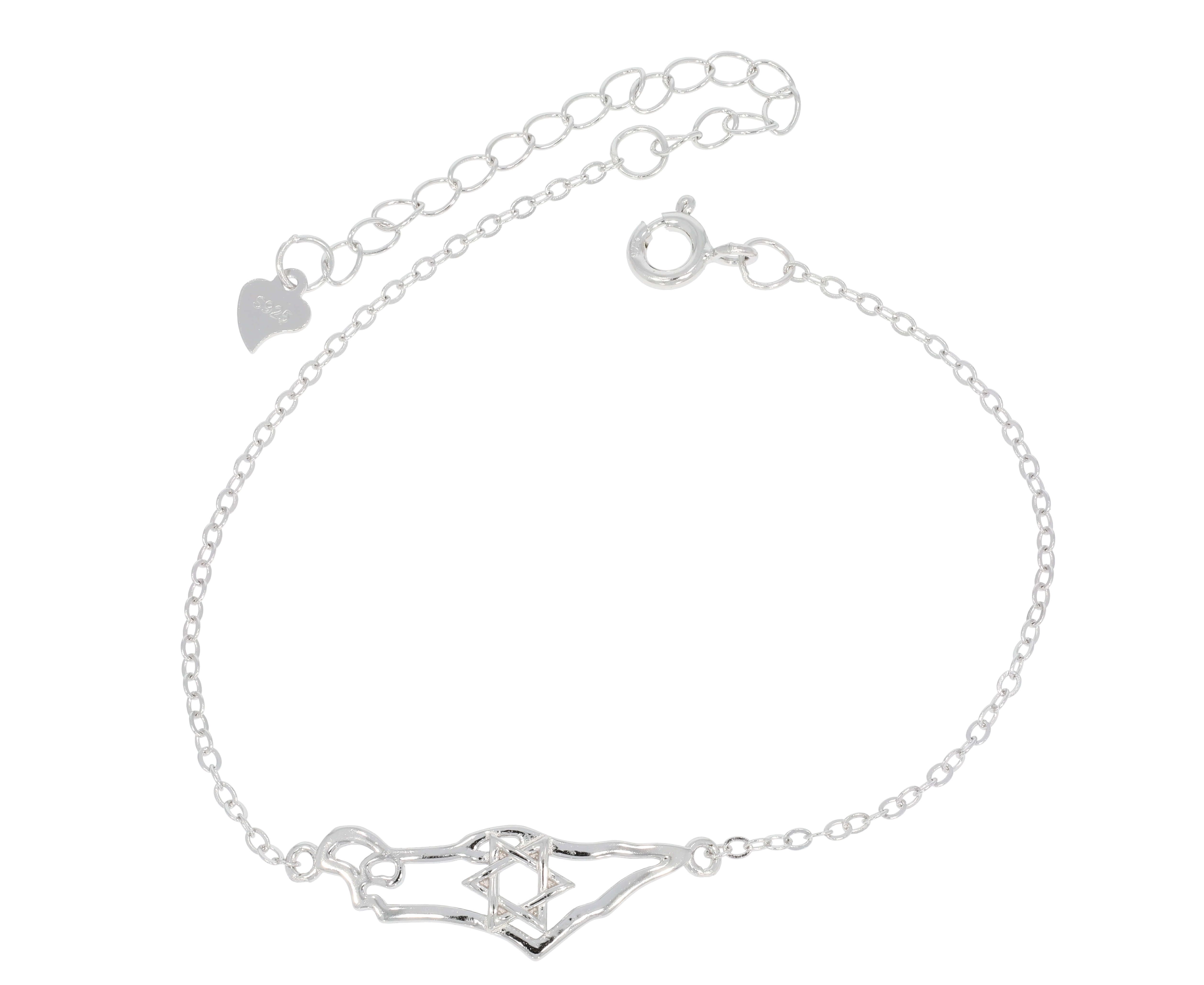 צמיד מפת ארץ ישראל עם מגן דוד כסף 925