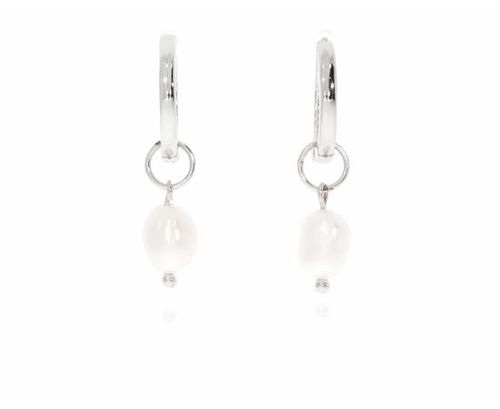 זוג עגילי חישוק+פנינים כסף 925 (5.5mm)