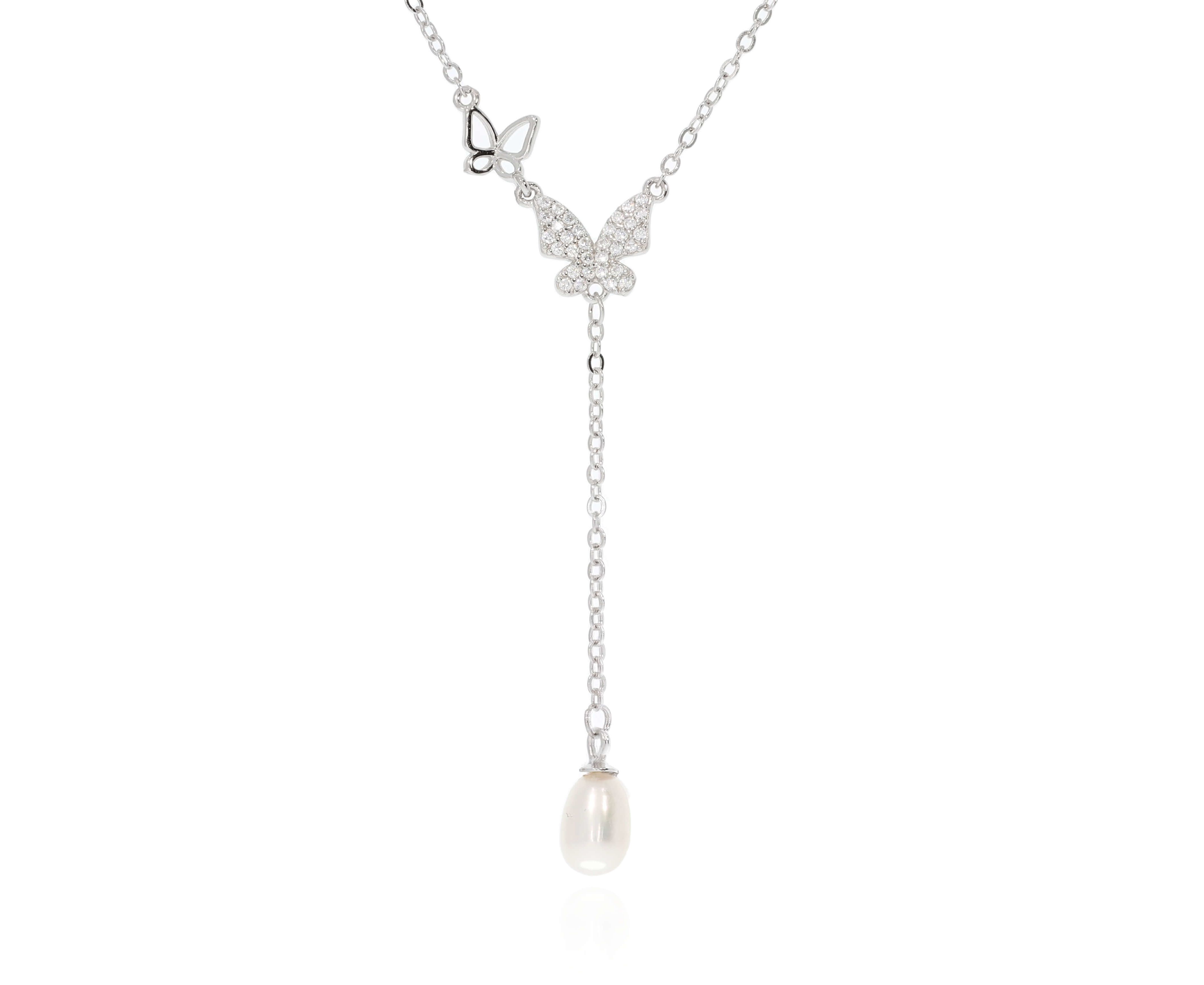 שרשרת נופלת פרפר ופנינה כסף 925