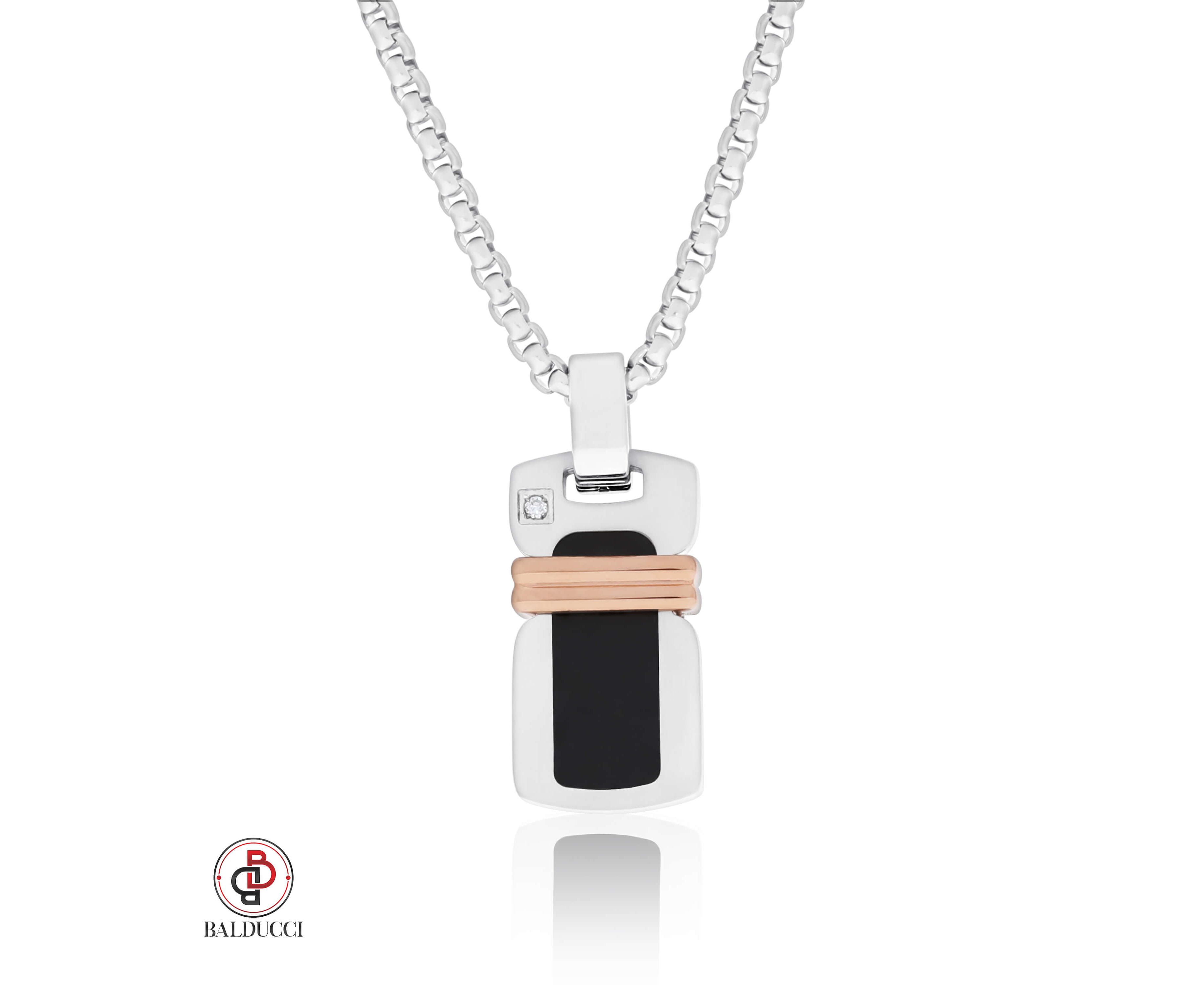 שרשרת סטיל משולב יהלום של המותג BALDUCCI האיטלקי.