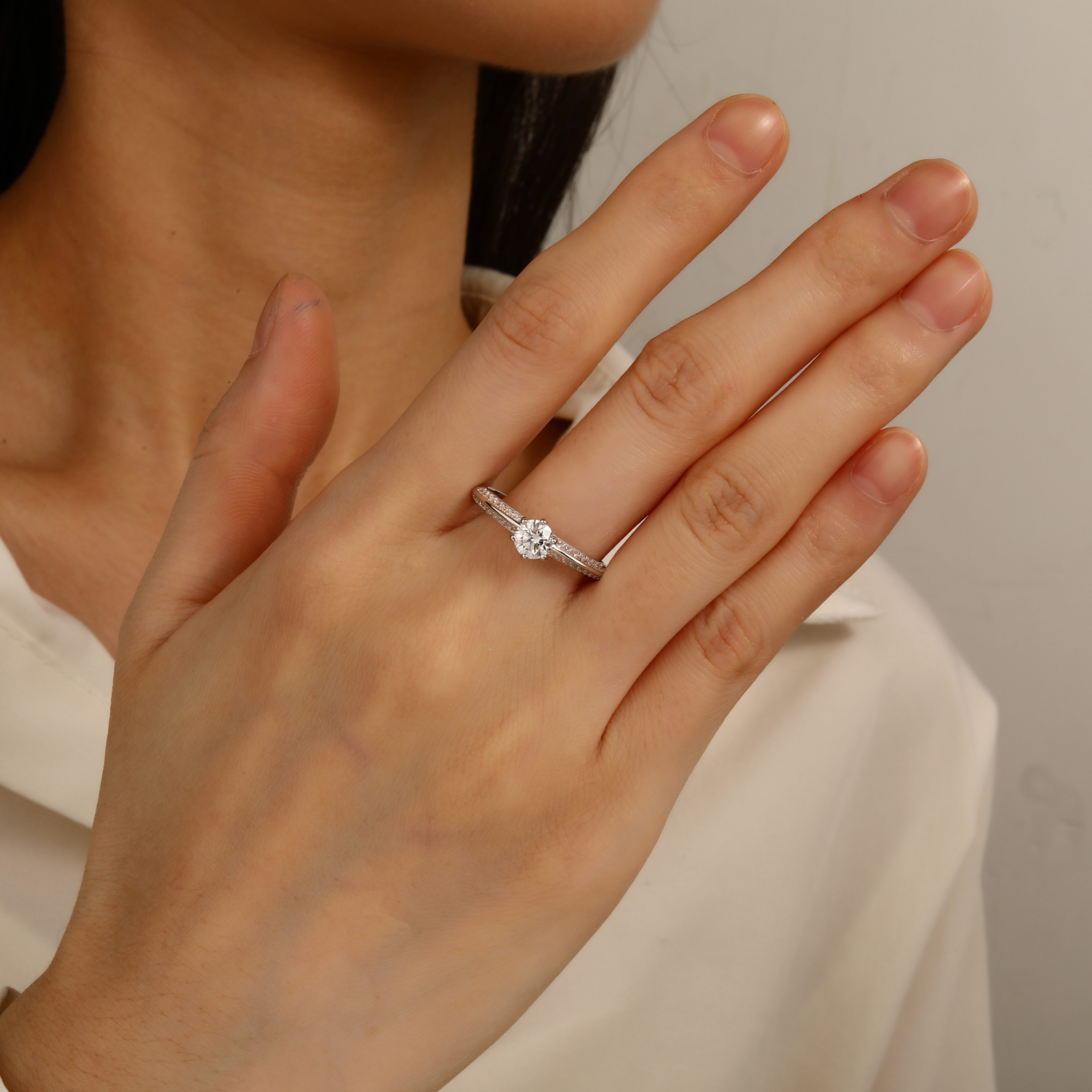 טבעת כסף 925 שיבוץ יהלום מוסונייט 0.5 קראט