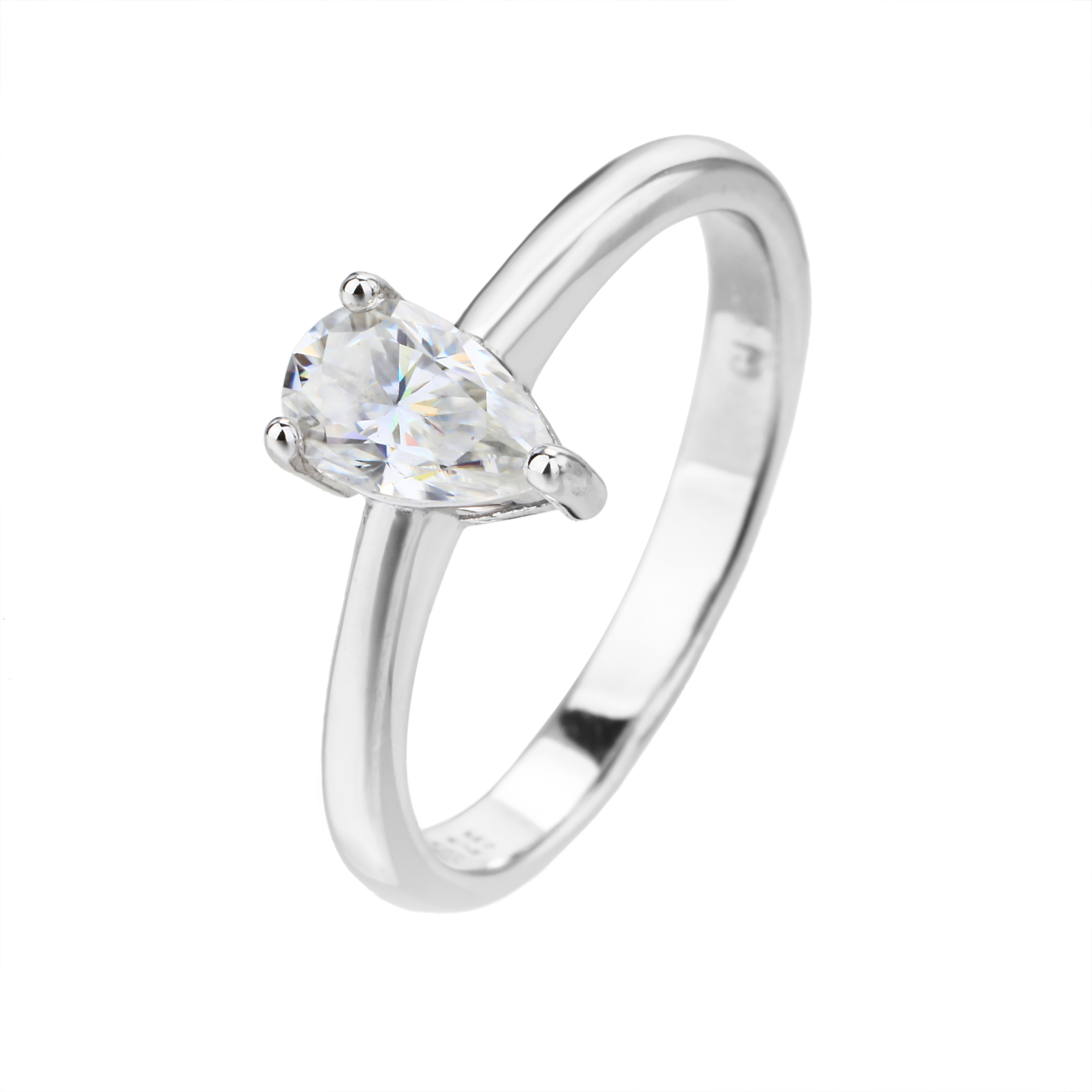טבעת כסף 925 שיבוץ יהלום מוסונייט טיפה 1.5 קראט