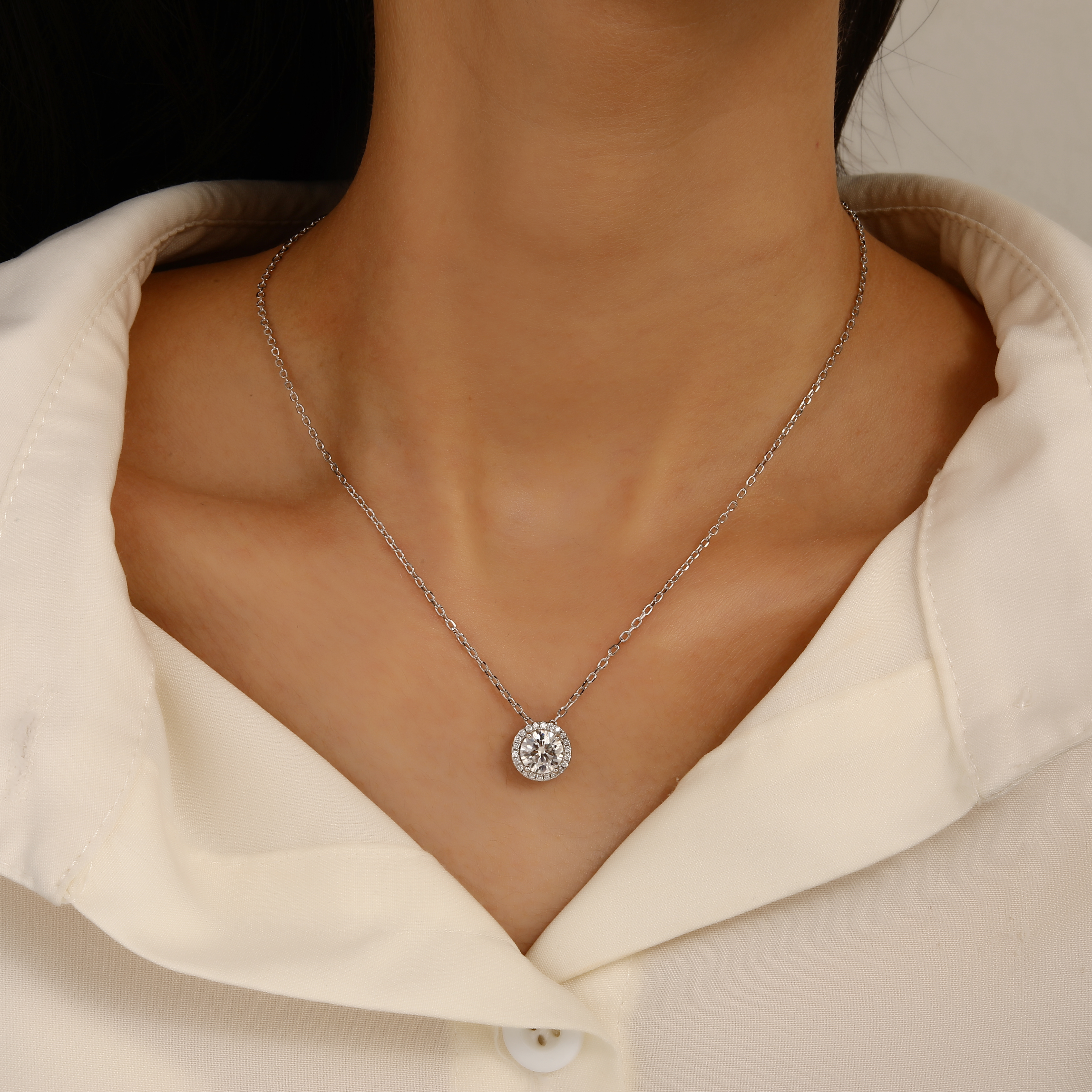 שרשרת כסף 925 סוליטר שיבוץ יהלום מוסונייט 1.5 קראט