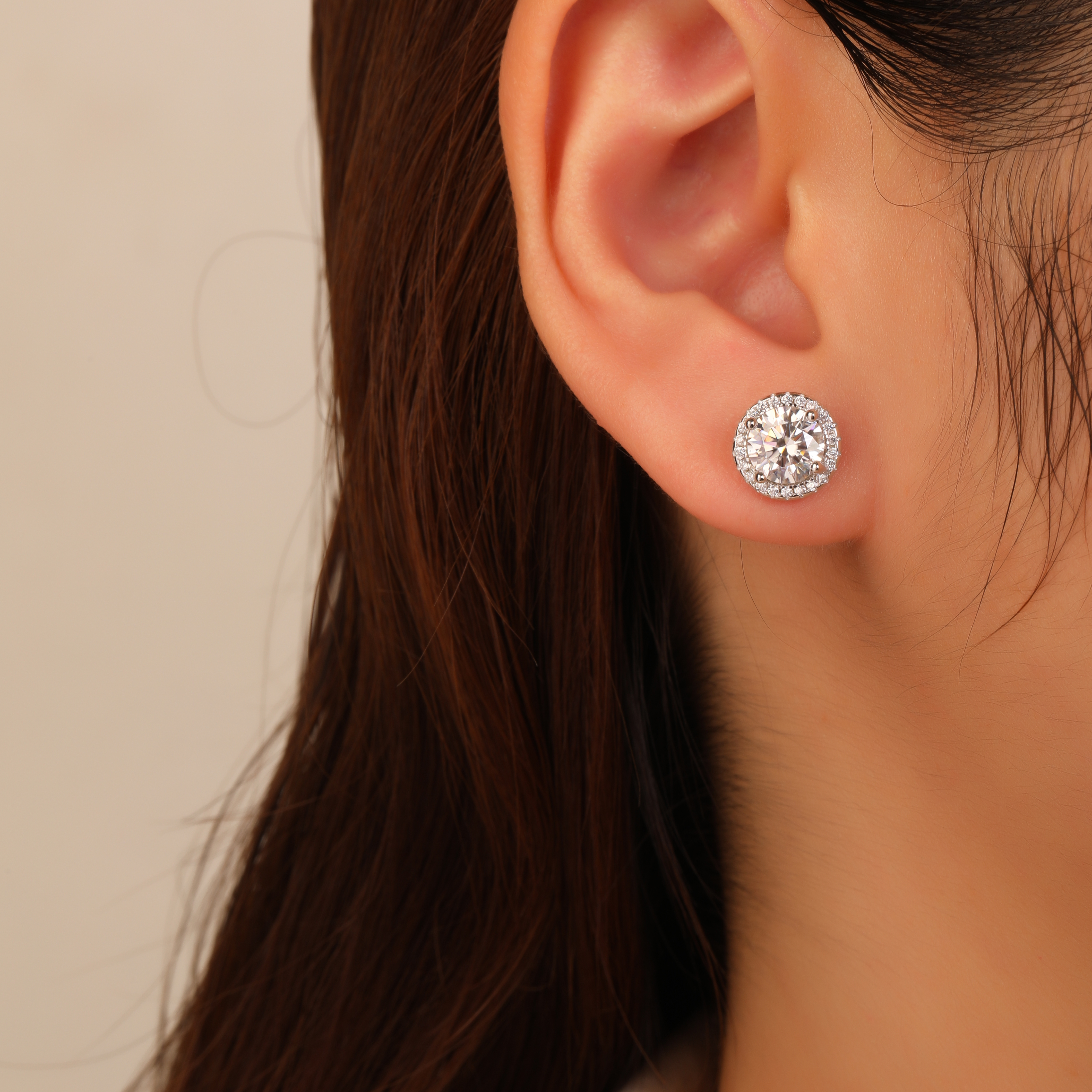 עגיל כסף 925 בשיבוץ יהלום מוסונייט 3 קראט