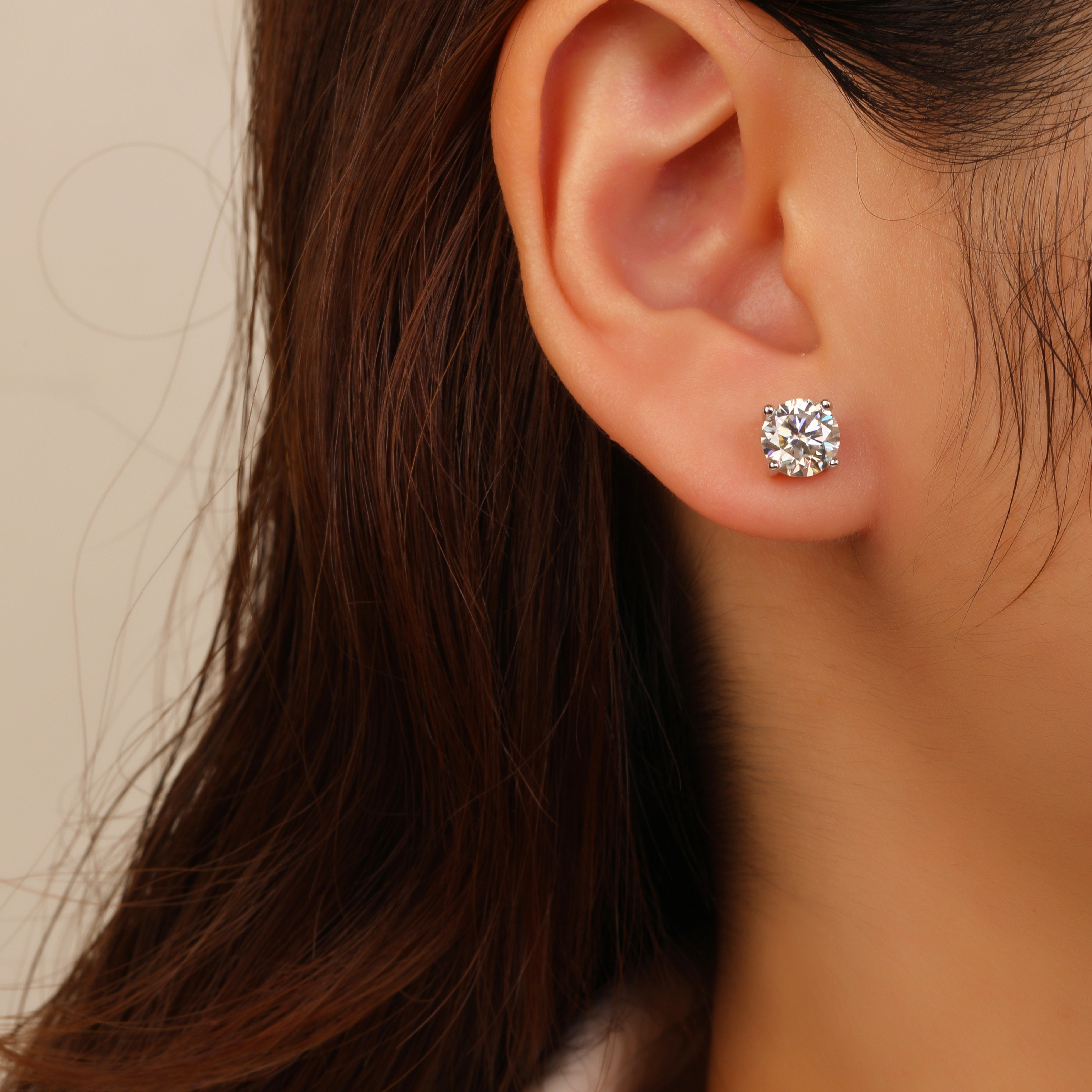 עגיל כסף 925 שיבוץ יהלום מוסונייט 3 קראט