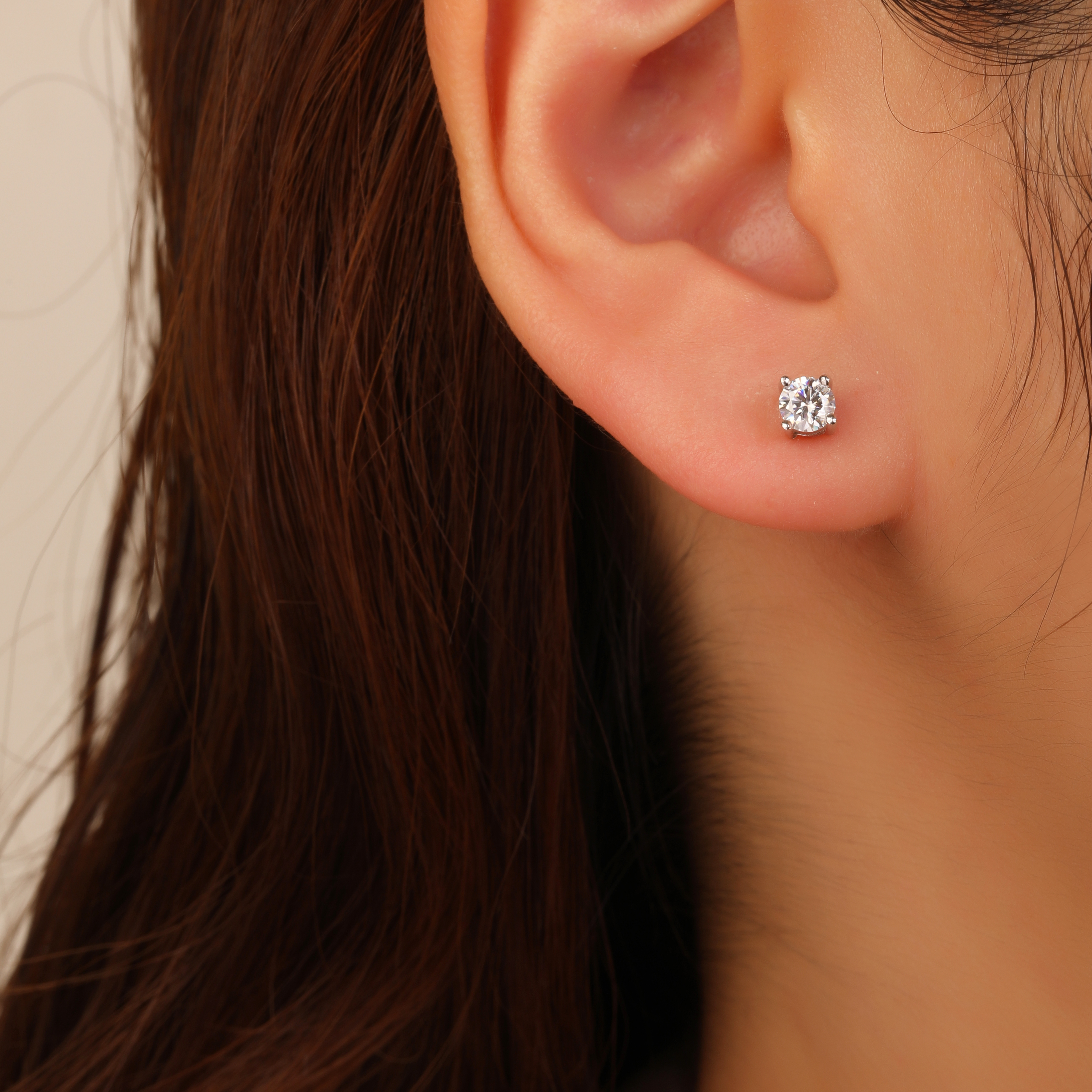 עגיל כסף 925 שיבוץ יהלום מוסונייט 0.8 קראט
